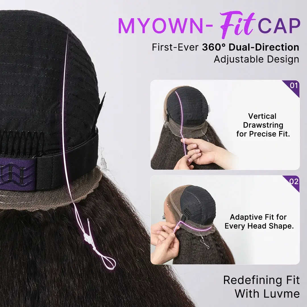 MyOwn-Fit™ 360 HD Lace Kinky Straight Wig Flexi-Fit Invisi Drawstring Cap & Pre-Cut Lace—